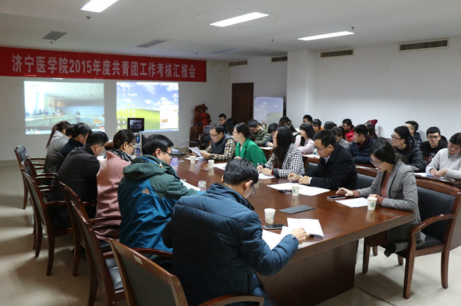 汇报会上,团委副书记刘瑞文就考核具体事项作了说明,各团总支、附院团委负责人根据学校共青团年度工作要点和考核意见要求,从团总支、附院团委的基本情况、思想引领、校园文化、素质拓展及组织建设等方面,以PPT形式对2015年度工作实绩和工作创新进行了交流和展示。