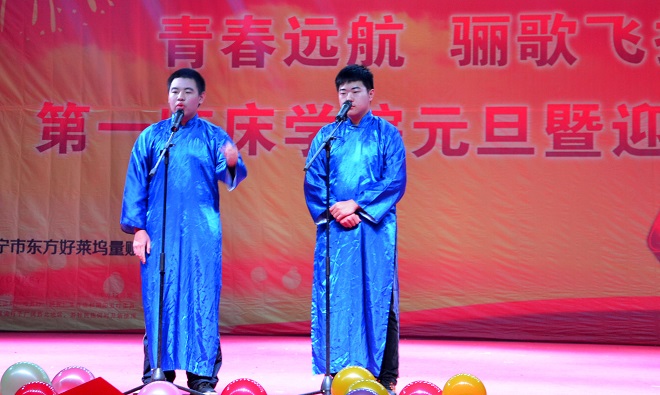 晚会在开场歌舞《春天在招手》中拉开帷幕,马奎元代表学院致辞,他说,2015年学院在开展 “三严三实”专题教育活动、临床医学专业认证工作及参加全国临床技能大赛等方面取得了可喜成绩,这些成绩的取得与学校的指导帮助和全体师生的共同努力密不可分。他表示,在2016年学院将进一步全面深化综合改革,大力加强学科专业建设,全面提升学科水平,扎实推进学院各项事业取得更大的进步。