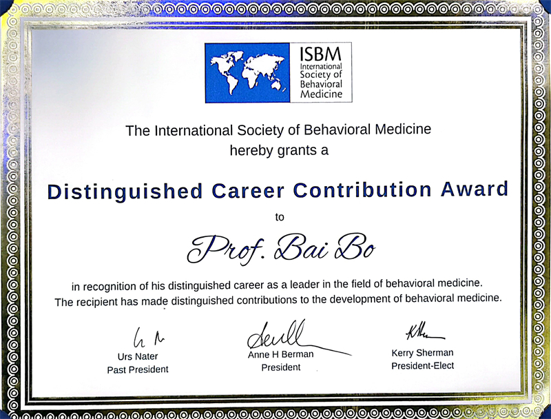 据悉,此次是国际行为医学大会组委会首次评选“国际行为医学杰出职业贡献奖”,白波是唯一获此殊荣的亚洲行为医学专家。国际行为医学会评奖委员会主席、国际行为医学会前任主席纳特教授(Urs M. Nater)为白波颁发“国际行为医学杰出职业贡献奖”证书,济宁医学院精神医学研究院副院长刘燕博士代为领奖。