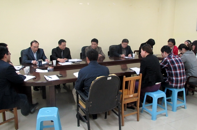 4月1日上午,教务处处长陈廷、副处长王凌波到社科部同社科部主任秦建中、副主任张秋生、毕于建及部分老师