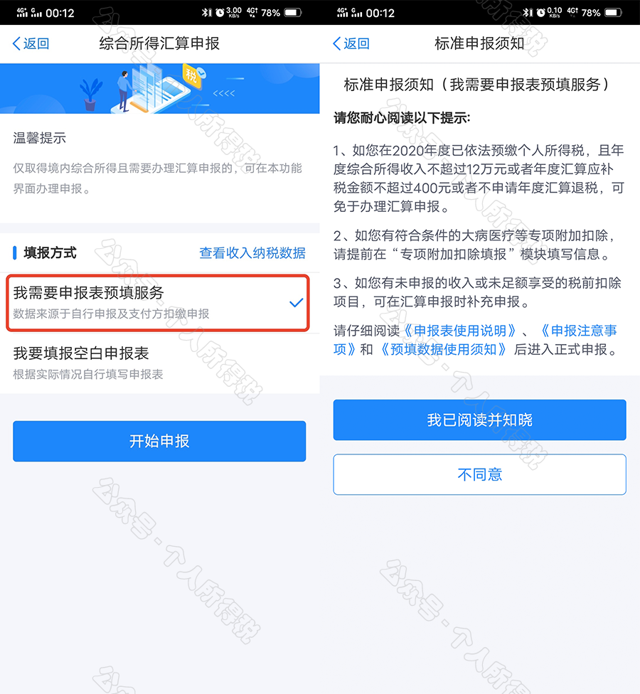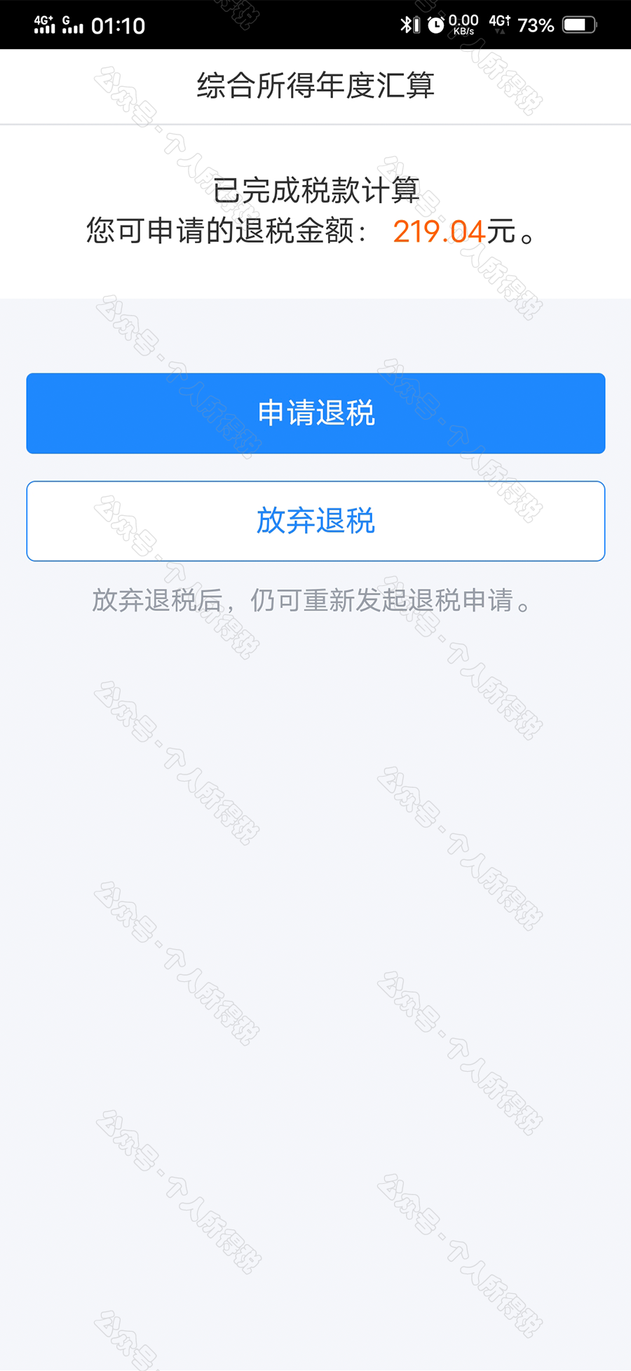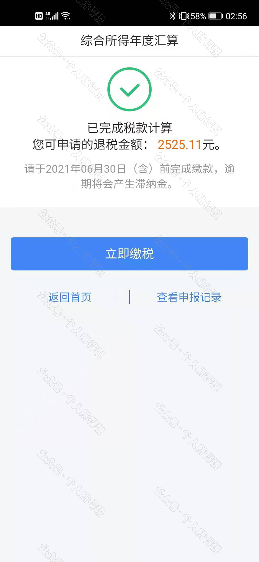 若您收入不足12万元且有应补税额,或者收入超出12万元但应补税额≤400元,申报提交后无需缴款,点击享受免申报。