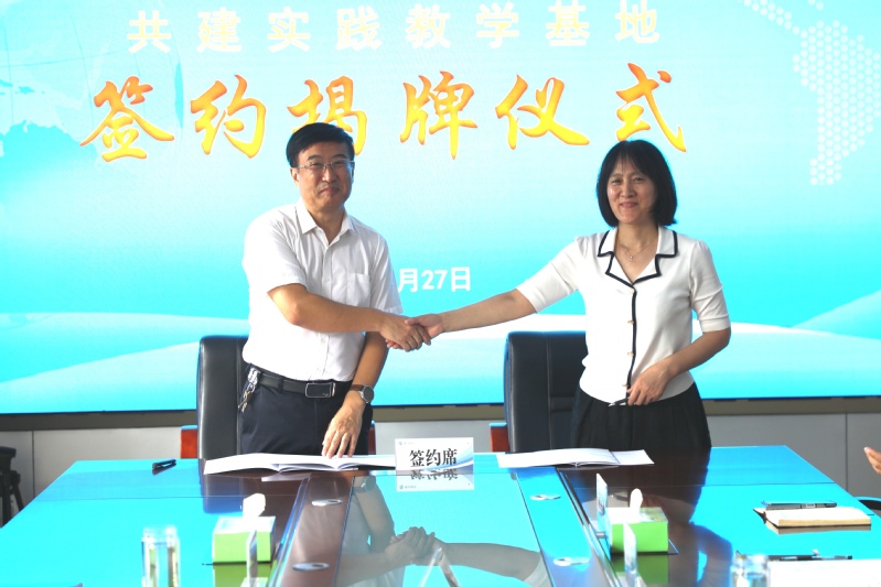 林立与严秀丽共同签署了合作协议书,卫明武与方明共同为“济宁医学院实践教学基地”揭牌。