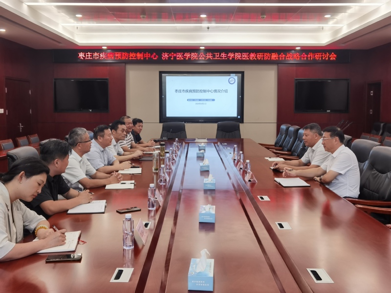 李成旭代表枣庄市疾控中心,对我院一行的到访表示欢迎。他表示,济宁医学院公共卫生学院为枣庄疾控事业输送了大量的专业人才,双方的互动纽带源远流长,希望双方充分发挥各自优势,进一步推进医教研协同,优势互补,在人才培养、科研创新等领域加强合作,携手为公共卫生事业发展做出新的贡献。
