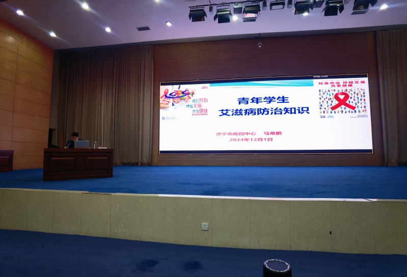 12月1日,正值第37个“世界艾滋病日”,我院邀请济宁市疾病预防控制中心艾滋病防治科负责人马希鹏,在太白湖校区五楼报告厅成功举办了以“社会共治,终结艾滋,共享健康”为主题的专题讲座。