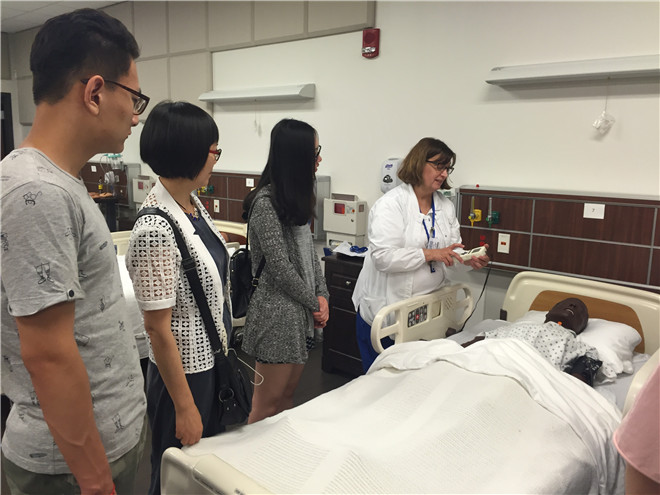 在美期间,师生随堂观摩并参与了临床病理生理学、护理临床药理学、成人护理学课程和模拟实训课,参观了三家各具特色的医院。