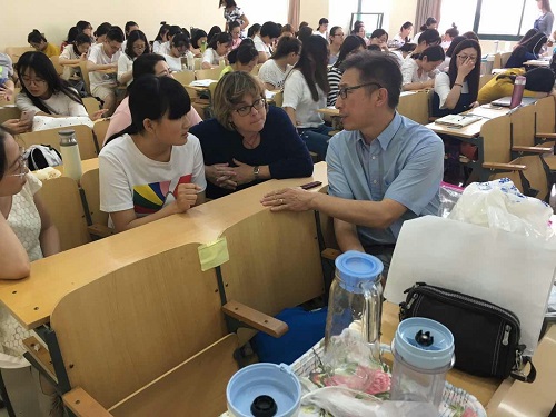 美国孟菲斯大学护理学院2位教授在校期间,为护理学院2015级中美合作办学本科班的学生讲授了老年护理学、药理学等专业课程。两位教授治学严谨,教学方法独特,课堂气氛活跃,每堂课都精彩纷呈。Dr. Chung结合自身经验讲述了作为护士在病人临床用药后的观察重点,并运用许多生动的临床案例为学生讲解的深入浅出,与学生进行了良好的互动。Dr.Baldwin讲课语言幽默,临床案例信手拈来,并现场让学生体验了老年人的衰老状态和饮食习惯,给学生留下了深刻印象。