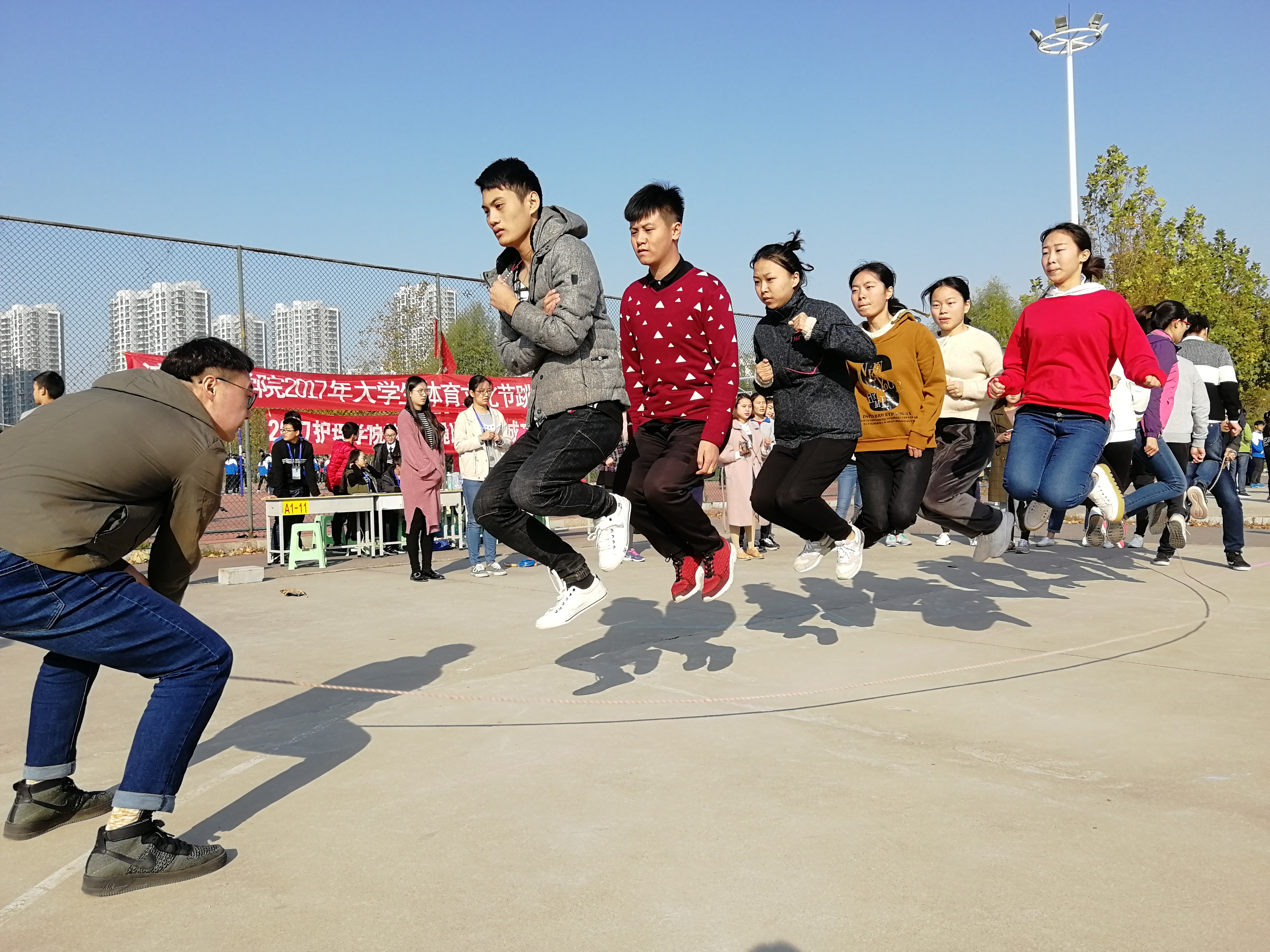 2017年11月5日9时,由护理学院学生会纪检部承办的济宁医学院2017年大学生体育文化节跳绳比赛在校篮球场成功举办。有100余人参加了本次比赛。