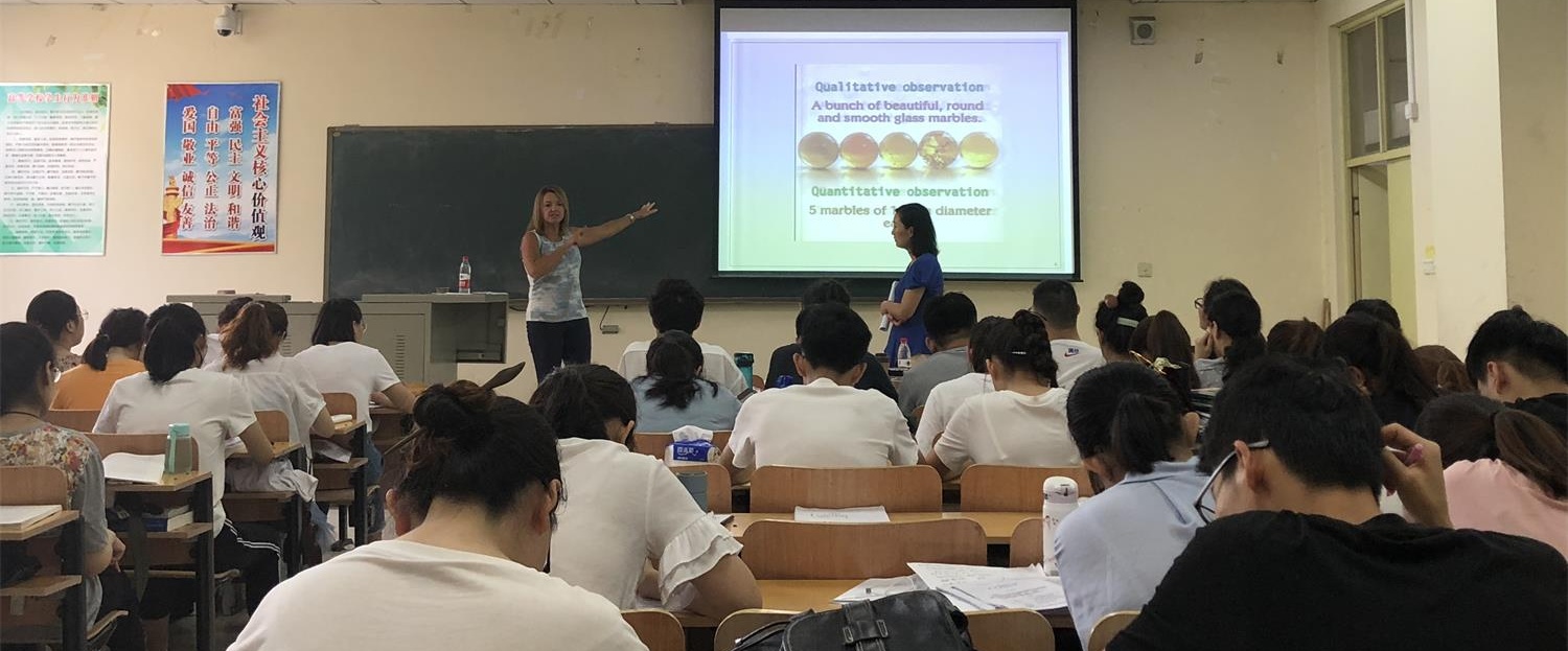 在校期间,美国孟菲斯大学的三位教授为护理学院2016级中美合作办学本科班的学生讲授了基础护理学、护理学导论、护理研究等专业课程,在临床技能中心开展了模拟实验教学活动。三位教授治学严谨,教学方法独特,课堂气氛活跃,每堂课都精彩纷呈,以诙谐的语言充分调动了学生们的积极性。理论课上,教授旁征博引,临床案例信手拈来,并就临床案例细致且深刻地分析了中美在临床护理上的差异。模拟实验教学更是让老师和学生大开眼界,教师设置临床案例,以学生为主导,以团队为单元,各司其职,让学生充分利用已学知识按照SBAR流程对该病人进行评估、诊断、计划、实施和评价。整个过程不仅考察了学生对专业知识的应用能力和临床操作技能,更是培养了学生的护理临床思维和创新能力。教研活动期间,Dr.Lin Zhan院长与护理学院王文军院长、刘鹏飞副院长进行了单独会谈,并分别召开了专业教师、辅导员座谈会,就中美合作办学指标中护理学专业建设、师资培养、学生工作等方面进行了座谈,并与老师们进行了深入交流,鼓励全体教师积极报名攻读孟菲斯大学护理学院的博士学位。Dr.Lin Zhan教授、Dr.Sheri Howard教授还参观了附属医院,在附院临床技能中心开展了模拟教学活动,医院部分护理人员参加了教学活动。