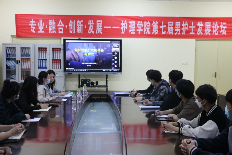 为庆祝第111个国际护士节,喜迎建校70周年,加强学生专业思想教育,5月10日晚,护理学院举办第七届男护士发展论坛,邀请北京协和医院李尊柱、青岛大学附属医院姜文彬做线上讲座。护理学院党总支副书记杨绪霞主持论坛。