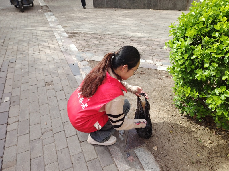 活动期间,志愿者们兵分两路,深入社区广场及主干道区域,系统开展环境整治工作。队员们手持工具清扫路面、捡拾塑料废弃物及烟头纸屑,同步实施垃圾分类教学,对社区12处垃圾投放点进行规范整理。通过两小时高效有序的协作,累计清理垃圾30余袋,使社区公共空间焕发新颜。
