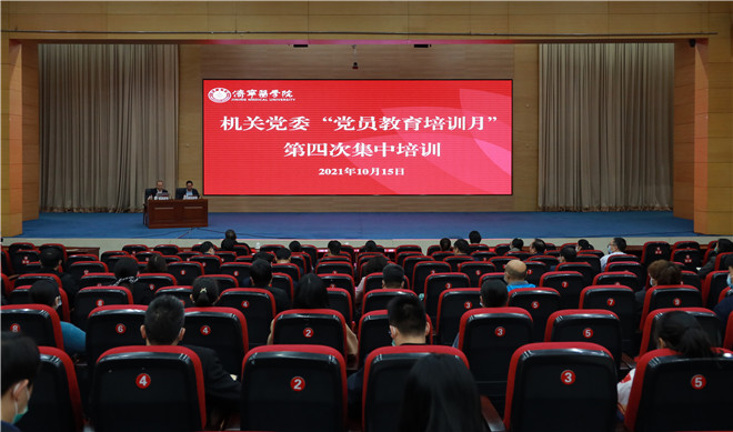 10月15日,机关党委组织开展“党员教育培训月”第四次集中培训。培训由校党委委员、统战部部长陈晓东主持。