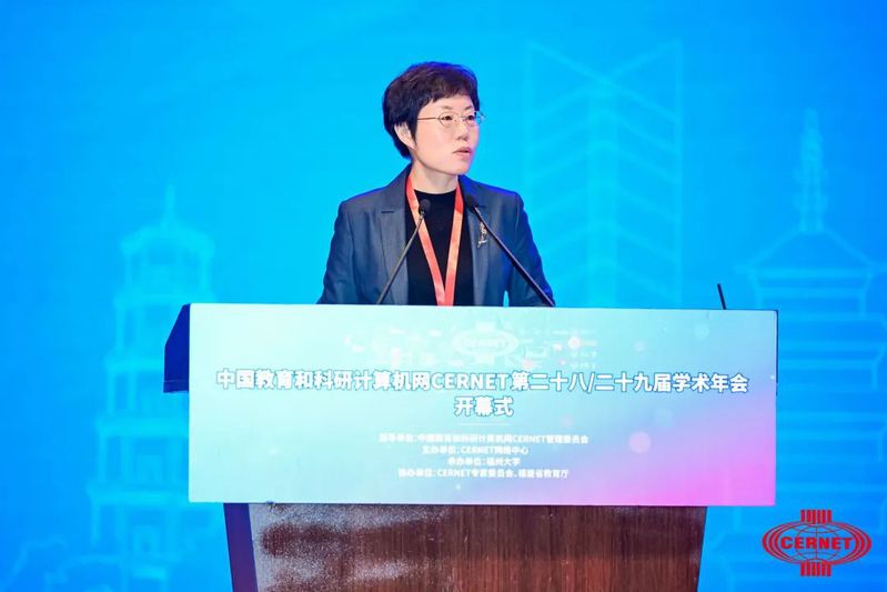 开幕式上,教育部科学技术与信息化司副司长、CERNET管委会办公室主任舒华发表主旨讲话。她就深入学习宣传贯彻党的二十大精神,落实国家教育数字化战略行动,推动下一代互联网融合创新提出三点意见,并对CERNET的未来发展提出具体要求和希望。