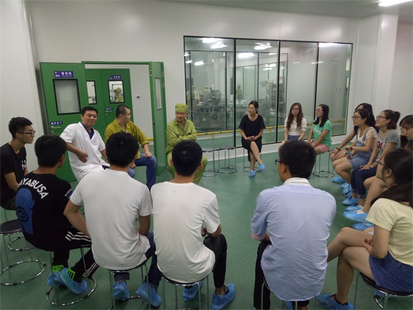 辰欣药业股份有限公司人力资源部部长王永霞对高教园师生一行表示了热烈的欢迎。王永霞首先讲解了企业文化并带领同学们参观了企业荣誉展厅,随后安全生产部副部长袁孝伟为同学们做了夏令营期间的安全培训。在随后的几天,同学们和沈阳药科大学的师生先后参观了辰欣药业股份有限公司一园区、二园区、鱼台园区、汶上园区和大学园研发部。平时埋头于书本的同学们在生产车间表现出极大地好奇,纷纷表示通过此次活动不仅使他们能够理论联系实际,真正的学以致用,还让他们尽早的了解社会、了解将来的就业岗位,增强了学习动力和学习的目的性、针对性,更快树立起献身医药事业的远大理想。