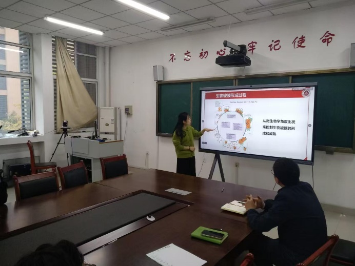 渠阳翠博士介绍了抗菌材料的研究现状和目前工作。针对细菌生物被膜难被清除的难题,渠博士从抵抗生物被膜形成的角度出发,设计了一种具有多模式抗菌的抗菌纳米材料和抗菌表面,其具有高效的抑制生物被膜形成的能力。